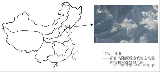 千灵山位于北京市丰台区, 由于交通设施建设形成了硬质高陡岩石边坡, 难以进行生态恢复与绿化。千灵山边坡为过去采石留下的石灰岩高陡硬质边坡, 边坡呈东西走向, 整个坡底长为70m, 最低处为2.7m。最高处为16.5m; 工作面坡度两侧稍缓, 大致在65°左右, 中间较陡, 近乎直立, 大约为85°。根据调查及研究, 北京山区边坡以岩质边坡为主, 其失稳破坏模式较为典型, 主要为剥落、落石、崩塌、滑坡等, 具有严重的地质灾害隐患。