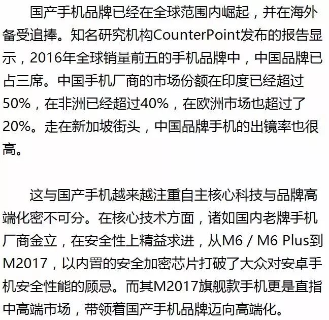 如今,中国手机品牌正逐渐撕去价廉质低的标签,开发更加核心的科技,拥有了更加广阔的国际市场,并致力于打造更加高端的品牌。“下一个硅谷已出现在东方,中国的创新一代已准备好与世界顶级高科技品牌正面竞争。”美国著名技术杂志《连线》刊文评论称。