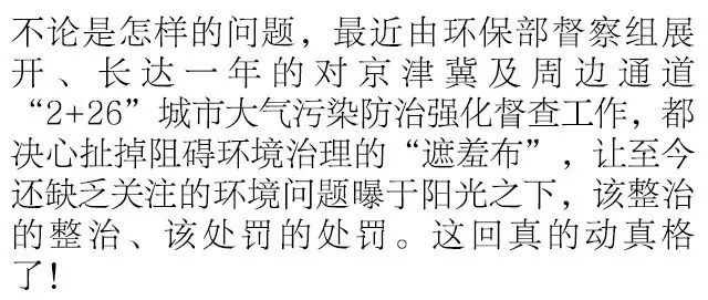 说实话,老百姓对于身边的环境不放心,想看到的就是这样“负责任、不怕事”、专跟污染过不去的环境督查,查处违规企业、查出环境隐患,才能上下一心,通力合作,重新找回碧水蓝天。